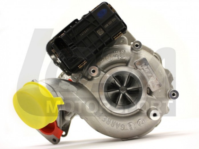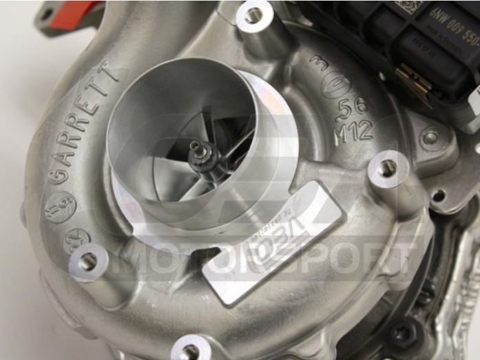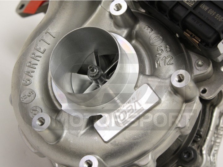 Upravené originální turbodmychadlo Garrett GTB2260vk. Obal turbodmychadla CNC upraven, aby mohl pojmout větší kompresorové i výfukové kolo. Díky těmto úpravám, které jsou podpořeny zesílenými ložisky a těsněními, preciznímu vyvážení a vybalancování dokáže toto turbodmychadlo poskytnout vyšší výkon než seriové.