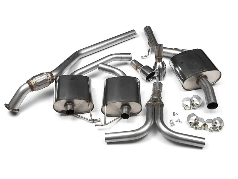 Vyroben z kvalitní nerezové oceli. Obsahuje díl se středovým rezonátorem (tišší verze), rozdvojení a vedení kolem zadní nápravy s tlumiči výfuku za zadní nápravou a zakončuje ho kulatá koncovka výfuku v několika provedeních. Díky zvětšenému průměru vedení přispívá k lepšímu proudění výfukových plynů, což má pozitivní vliv na výkon hlavně u upravených aut. Výfuk je až o 35% lehčí než originální, vyrobený z těžké oceli. Zlepšuje a zvýrazňuje zvuk motoru, ovšem bez nežádoucího dunění. Největší nárust výkonu lze čekat ve spojení s úpravou řídící jednotky od APR.