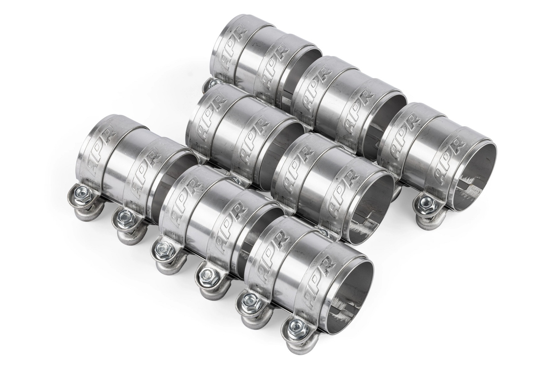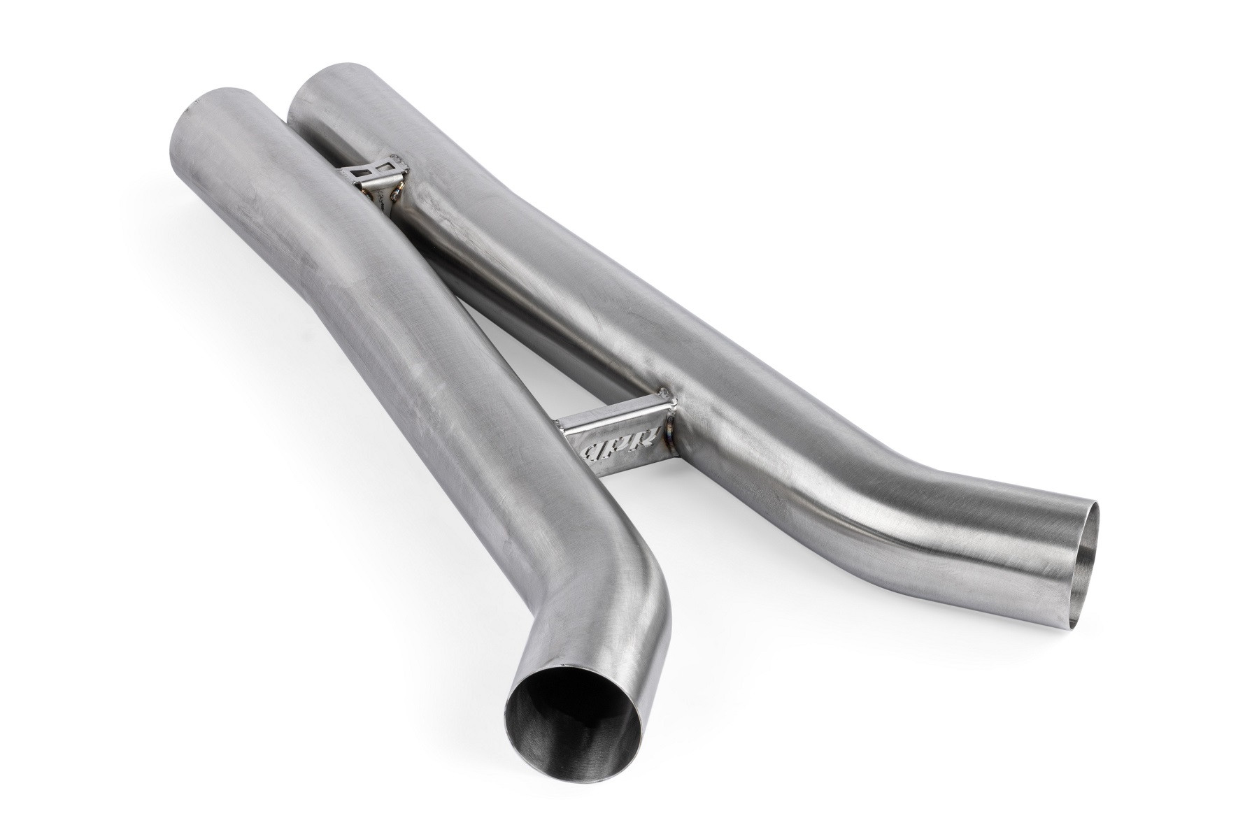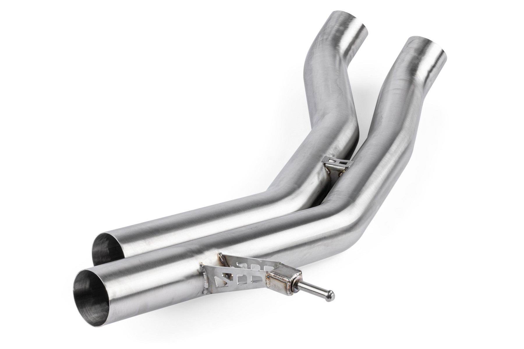 APR výfuk je vyrobený z kvalitní nerezové T304 oceli, která je strojově naohýbaná tak, aby byl prúchod spalin co nejpřímější. Jednotlivé části jsou svařené technologií TIG s foukáním argonu pro dosažení co nejhladčích svárů. Díky přesným držákům padne výfuk na originální uchycení bez potřeby dalších úprav. Výfuk začíná již hned za filtry pevných částic, takže nijak neovlivňuje emise vozu a je napojený přes odlité příruby, které zajistí extrémně hladký přechod mezi originálním downpipe a tímto sportovním výfukem. Celý výfuk ústí do sportovních tlumičů, ve kterých se rozdvojuje vedení na neklapkové tiché 2,5" vedení a klapkové hlasité vedení o průměru 3". Během klidné jízdy budou klapky zavřené a výfuk tak bude extrémně komfortní a neobtěžující. Ve sportovním módu nebo při plném plynu se pak klapky otevřou a zprostředkují úžasný zvukový projev V8.