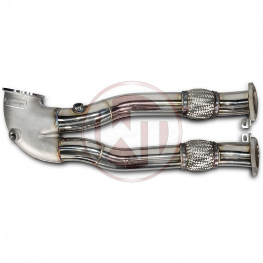 Celonerezový 1. díl výfuku o průměru 70mm s dvojicí sportovních 200 komorových katalyzátorů. Wagner Tuning kompletně přepracoval, tento pro výkon nejdůležitější díl tak, aby padnul kus za kus (bolt on) za seriový díl a napojil se bez problémů na zbytek výfuku. Díky využití CAD designu u návrhu a kvalitní T304 nerezové oceli při výrobě si můžete být jisti jak kvalitou a zpracováním, tak přírustkem výkonu na který byl kladen velký důraz.