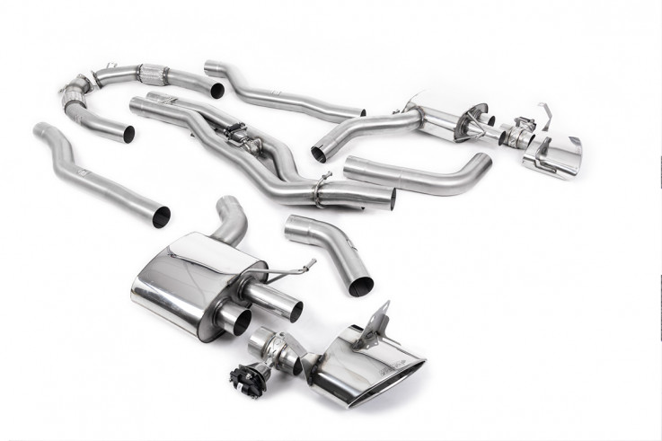 Vyroben z kvalitní nerezové oceli. Obsahuje napojení již na filtr pevných částic OPF / GPF a nahrazuje sériový svod průchozím vedením. Výfuk pokračuje vedením pod autem a kolem zadní nápravy s tlumičem výfuku za zadní nápravou, navíc s ventily pro ovládání hlasitosti výfuku. Zakončen je oválnými koncovkami výfuku ve dvou provedeních. Díky zvětšenému průměru vedení a zlepšení průtoku spalin skrz vedení, zlepšuje jak výkon, tak hlavně i zvukový projev. Výfuk je až o 35% lehčí než originální, vyrobený z těžké oceli. Největší nárust výkonu a úbytek hmotnosti lze čekat ve spojení s prvním dílem výfuku Milltek Sport a úpravou řídící jednotky od APR.