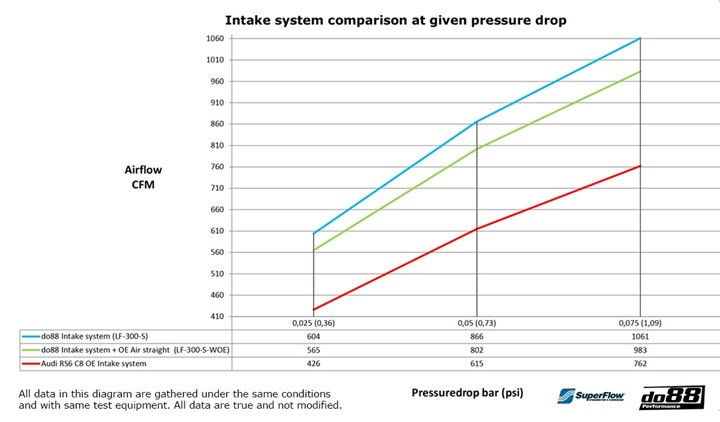 Do88 kit sání je navržen tak, aby zlepšil průtok vzduchu, snížil tlakové ztráty a zároveň nasával pouze studený vzduch. Mnoho aftermarketových sacích systémů nasává horký vzduch z motorového prostoru, což vede k vyšší teplotě nasávaného vzduchu (IAT) a tím pádem ke ztrátě výkonu a efektivity. Jedná se tak o uzavřené chladné sání.
