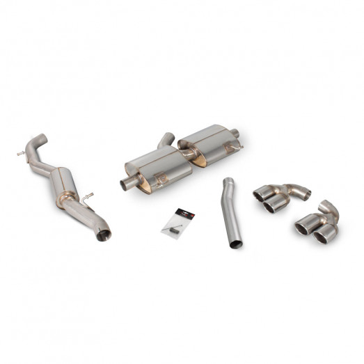 Catback výfuk Scorpion Exhaust vyrobený z nerezové oceli T304. Celý výfuk je tvořen ohýbaným vedením o průměru 70mm s průchozím absorbčním tlumičem / tlumiči (podle verze). Díky zlepšení proudění spalin a eliminaci zpětných tlaků dokáží výfuky Scorpion sprostředkovat jak maximální výkon, tak hlavně i pěkný jadrný zvuk.