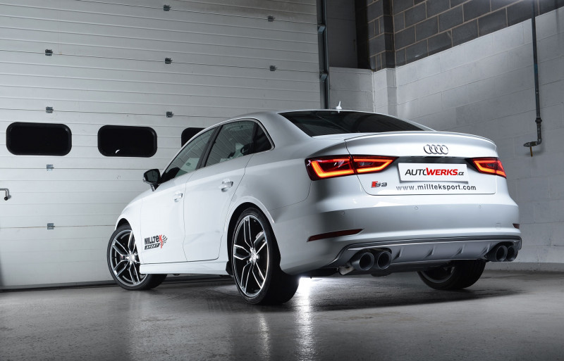 Milltek Sport nabízí několik variant catback výfuků pro Audi S3 8V quattro Sedan / Cabrio 2.0 TFSI. Základní rozdělení je podle počtu tlumičů, kde verze bez rezonátoru nemá středový tlumič, který je nahrazen trubkou. Tato verze je nejhlasitější, což nemusí každému vyhovovat.