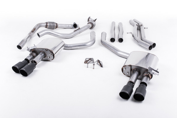 Klapkový catback výfuk AUDI S4 a S5 Sportback B9 3.0 TFSI V6 Milltek Sport - bez rezonátoru / kulaté černé koncovky GT90