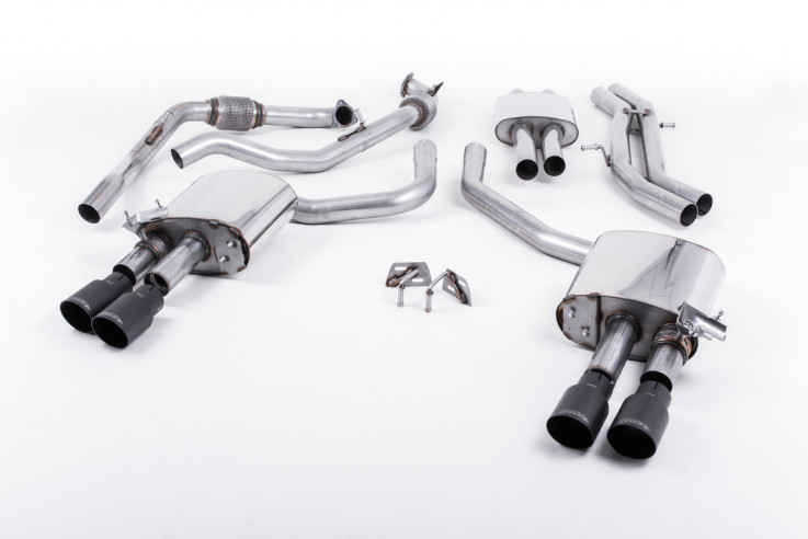 Klapkový catback výfuk AUDI S4 a S5 Sportback B9 3.0 TFSI V6 Milltek Sport - s rezonátorem / kulaté černé koncovky GT90