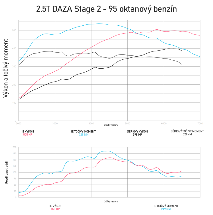 - Zvýšení výkonu až na 510hp a 736Nm