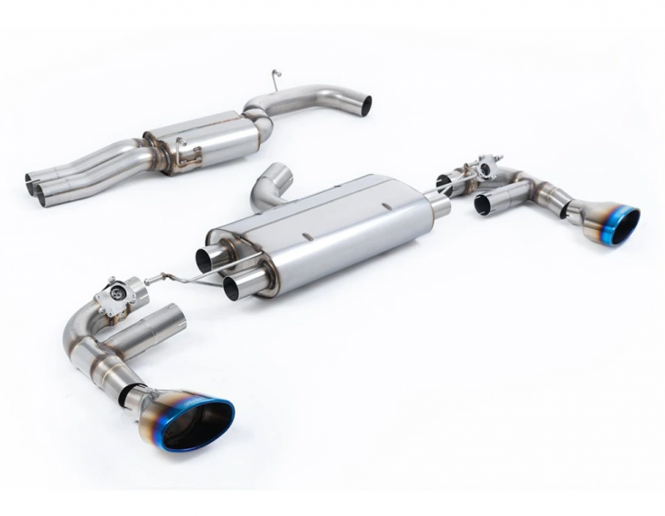 80mm Klapkový catback výfuk AUDI TT RS 8S 2.5 TFSI Milltek Sport - S rezonátorem / modré-opálené titanové koncovky - 72 272 Kč