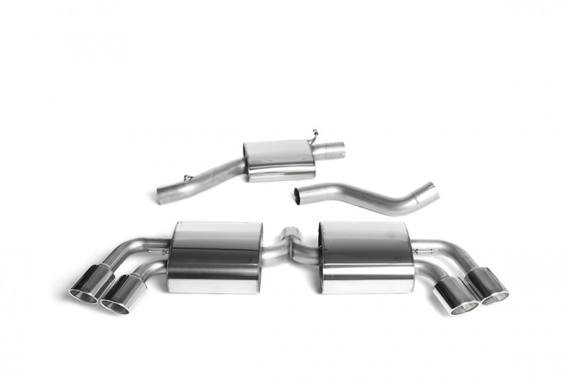 Vyroben z kvalitní nerezové oceli, obsahuje podle verze díl s rezonátorem (tišší) nebo bez rezonátoru (hlasitější verze), vedení kolem zadní nápravy s tlumičem výfuku za zadní nápravou. Zakončuje ho dvojitá koncovka výfuku Díky zvětšenému průměru vedení přispívá k lepšímu proudění výfukových plynů, což má pozitivní vliv na výkon hlavně u upravených aut. Výfuk je až o 35% lehčí než originální, vyrobený z těžké oceli. Zlepšuje a zvýrazňuje zvuk motoru. Největší nárust výkonu a úbytek hmotnosti lze čekat ve spojení s prvním dílem výfuku a úpravou řídící jednotky od APR.