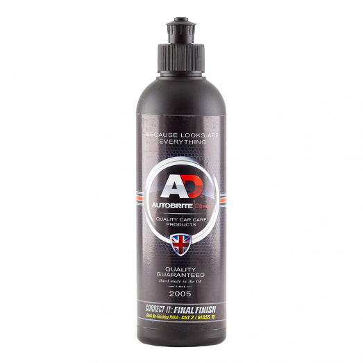 Final Finish z koreční sady "Correct IT" výrobce Autobrite Direct je finišovací leštěnka schopná kompletně eliminovat hologramy, zmatnění, lehké škrábance a stopy po broušení do hrubosti až P3000. Lehce abrazivní složení leštěnky Final Finish zanechá lak v perfektním stavu bez škrábanců a obohacený maximálním leskem.
