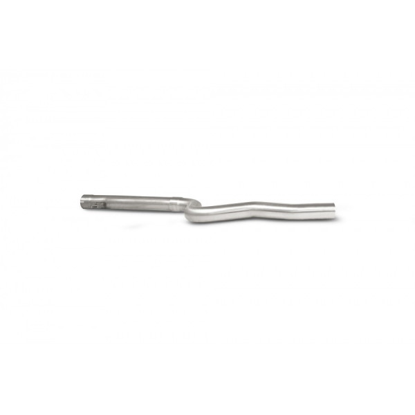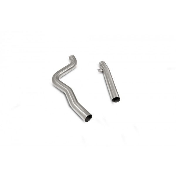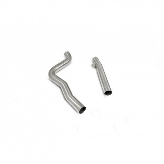 Přední díl výfuku Scorpion Exhaust vyrobený z nerezové oceli T304. Tento díl odstraňuje filtr pevných částic/GPF a nahrazuje je nerezovým výfukovým potrubím.