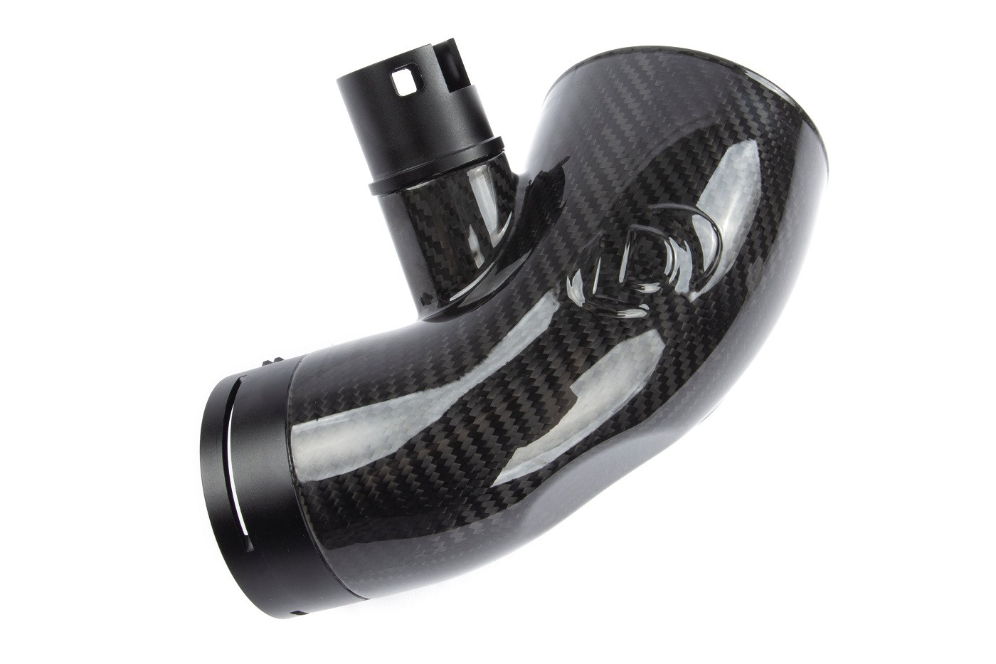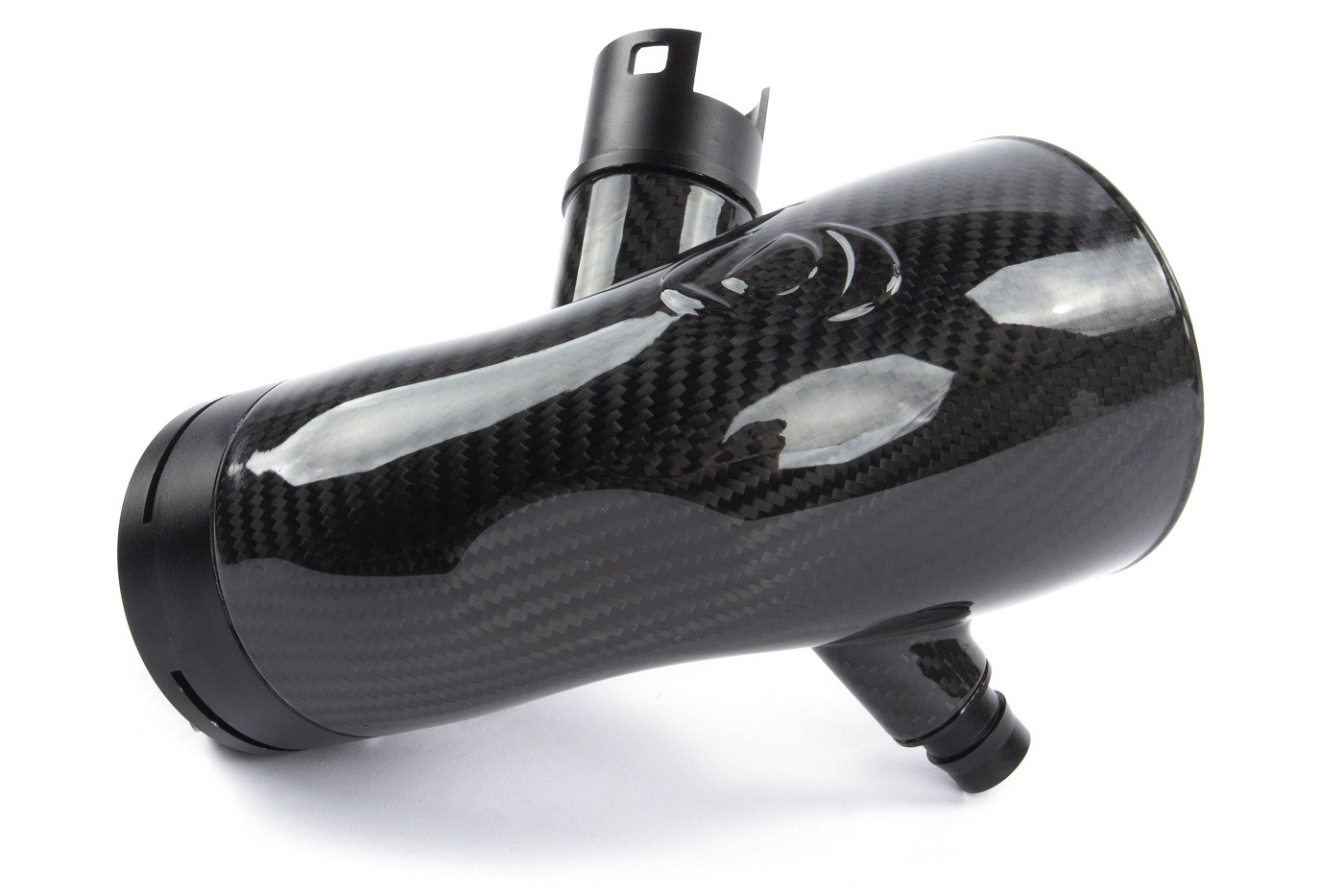 DINAN zvětšený vstup do turba přináší několik benefitů pro motor B58. Originální přívod vzduchu k turbodmychadlu obsahuje tlumiče hluku, které dosti narušují proudění vzduchu. Odstraněním těchto překážek, zvětšením průměru vedení a napřímením toku vzduchu získáte nejen vyšší výkon a lepší rekce motoru, navíc také získáte velmi příjemný zvuk turbodmychadla, který mnozí z nás, automobilových nadšenců, máme také rádi. Precizně CNC upravené příruby se postarají o perfektní utěsnění vzduchového vedení a karbon je také něco, co chcte v motorovém prostoru vidět. Ten neomrzí nikdy.