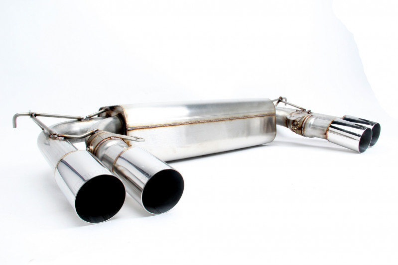 4 masivní kulaté koncovky o průměru 3,5" (89mm) s vygravírovaným DINAN logem