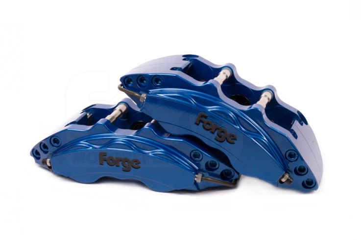 Přední brzdová sada od Forge Motorsport s šestipístkovými třmeny a odvětrávanými kotouči o rozměrech 380 x 32mm. Speciální povrchová úprava koutoučů s drážkami usnadňuje odvod mikročástic vznikajících při brzdění a umožňuje tak brzdám zachovat si optimální brzdný účinek. Tato sada je kompletní řešení předního brzdového systému včetně uchycení, pancéřových brzdových hadiček, brzdových destiček od EBC, kotoučů a lakovaných šestipístkových třmenů, které jsou dostupné v černé, bílé, stříbrné, červené, žluté, fialové barvě, světle a tmavě modré barvě.