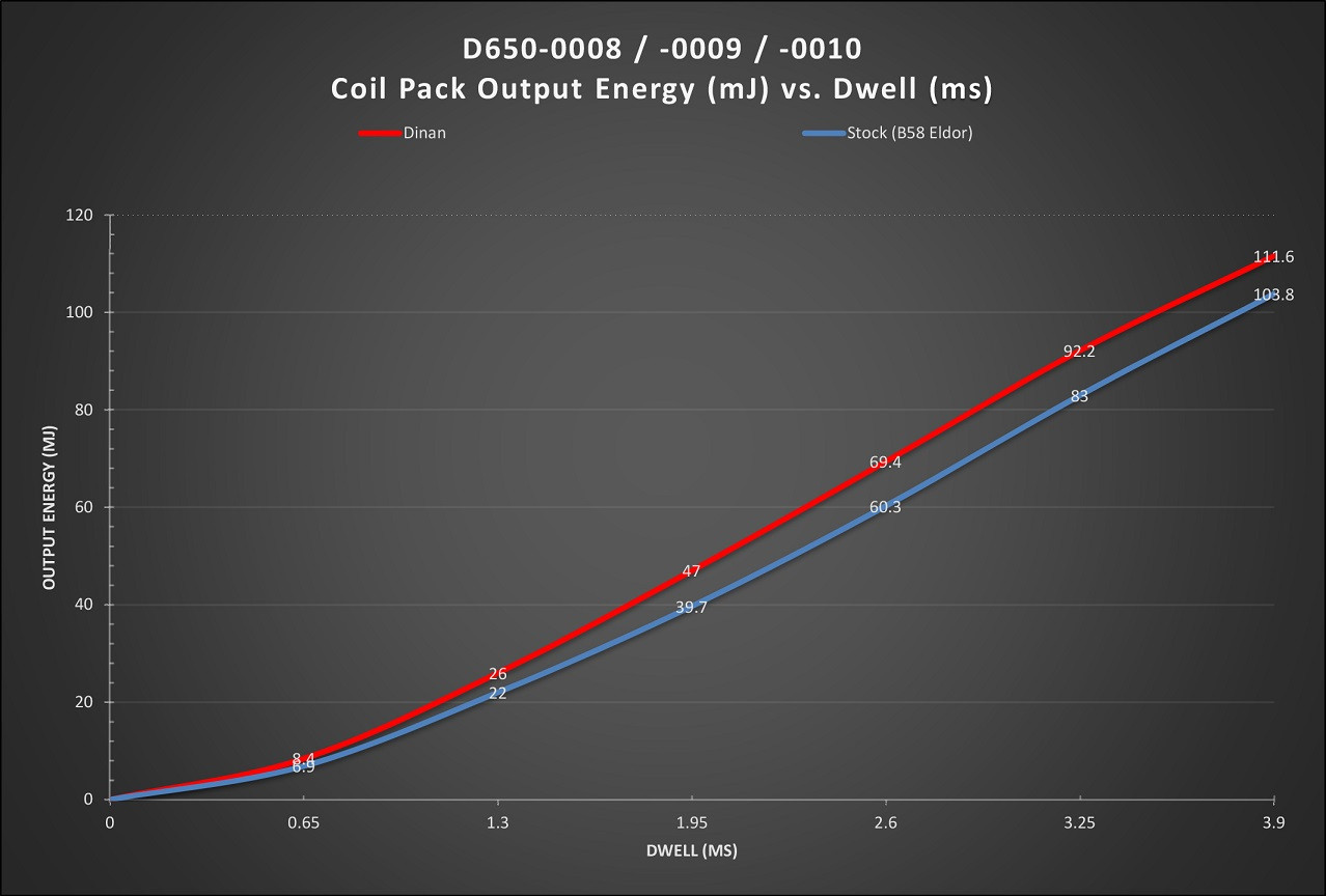DINAN zapalovací moduly jsou navrhnuty tak, aby dodaly zapalovacím svíčkám o 10% vyšší napětí a s lepší přesností. Díky většímu napětí budou produkovat svíčky větší jiskru, čímž se zlepší zapalování směsi a omezí se nežádoucí detonační zapalování. Pro velkou oblibu jsou nabízeny ve třech barevných variantách. Červené, Modré a Černé.