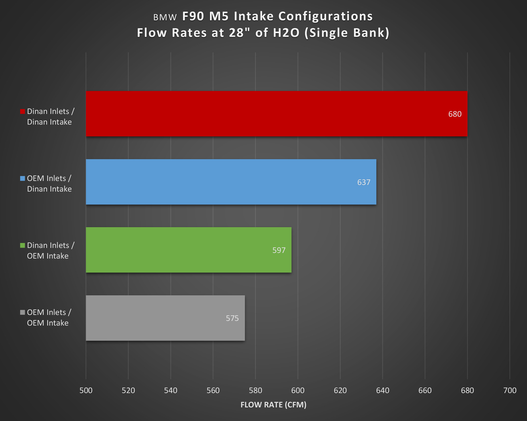 Toto sání vedení nejen, že skvěle vypadá a v motorovém prostoru zazáří, ideálně po boku DINAN sání, na většině automobilových show, ale hlavně reálně zvyšuje výkon, reakce motoru a zlepšuje zvuk. To je zapříčiněno zefektivněním designu, který maximalizuje průtok vzduchu skrze původní design sacího traktu motoru S63TU. Zde se podařilo zvýšit průtok vzduchu o 200%, což maximalizuje přísun vzduchu k originálním turbodmychadlům.