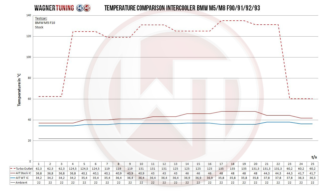 Motor V8 biturbo o objemu 4,4 litru (BMW- M S63 B44T) modelů M5 / M8 je vybaven nepřímým okruhem chlazení stlačeného vzduchu. Chlazení stlačeného vzduchu je tedy realizováno pomocí vodou chlazeného mezichladiče, který bude nahrazen tímto vysoce výkonným mezichladičem WagnerTuning.