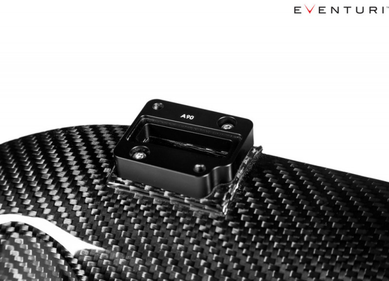 Karbonový airbox Eventuri má v tomto případě dva hlavní úkoly - chránit filtr před zdroji tepla a zásobovat filtr dostatečným množstvím čerstvého vzduchu. Protože je sání umístěno v bezprostřední blízkosti výfukových svodů, je pro výsledný výkon zásadní zamezit průniku tepla do airboxu. Proto byl airbox navržen jako zcela uzavřený a navíc maximálně využívá prostor pod kapotou vozu. I samotná trubka vedoucí do airboxu prochází laserem řezaným těsnicím plátem s gumovým těsněním. Poslední úpravou je pak dodatečný štít směrovaný proti výfukovým svodům. Tento štít je navíc opatřen špičkovou zlatou termoizolací.