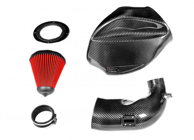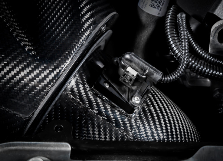 Uzavřený airbox je vyrobený ze 100% prepreg karbonu a slouží dvěma hlavním účelům - odstínit filtr od zdroje tepla v motorovém prostoru a zajistit přísun velkého množství čerstvého vzduchu díky dvojitému vstupu. Protože je airbox umístěn v těsné blízkosti výfukových svodů a jeho objem je maximalizován s ohledem na prostor pod kapotou, je zcela zásadní, aby byl airbox uzavřený. Utěsnění v místě sací trubice zajišťuje laserem řezaná příčka s gumovým těsněním. Sací trubka vede skrz tuto příčku a gumové těsnění zajišťuje, že horký vzduch nebude pronikat do airboxu.