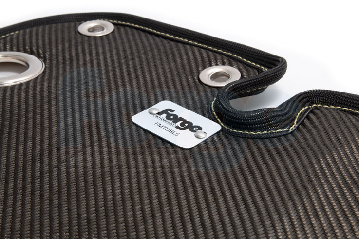 Tepelná clona od Forge Motorsport je schopná odolat sálajícímu teplu až o teplotě 1371 oC díky vnějšímu plášti uhlíkových vláken a jádru z vlny, která je obohacená směsí vápníku a hořčíku. Uchycení je provedeno z nerezové oceli.