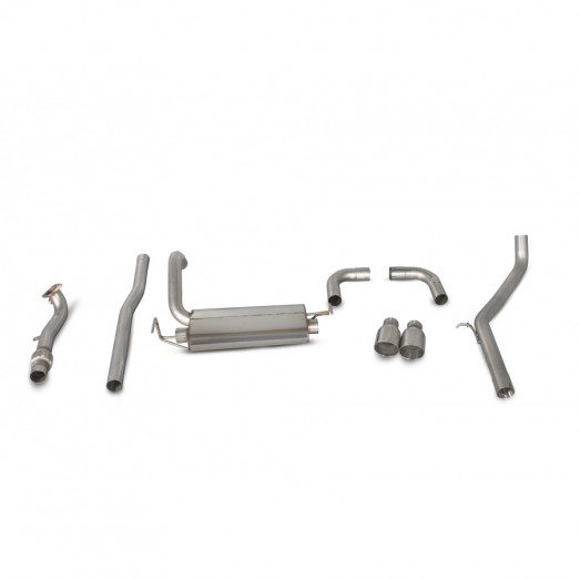 Catback výfuk Scorpion Exhaust vyrobený z nerezové oceli T304. Celý výfuk je tvořen ohýbaným vedením o průměru 63,5mm s průchozím absorbčním tlumičem / tlumiči (podle verze). Díky zlepšení proudění spalin a eliminaci zpětných tlaků dokáží výfuky Scorpion sprostředkovat jak maximální výkon, tak hlavně i pěkný jadrný zvuk.