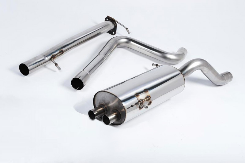 Vyroben z kvalitní nerezové oceli. Obsahuje díl bez rezonátoru (hlasitější verze), nebo variantu s rezonátorem (tišší varianta), vedení kolem zadní nápravy a tlumič výfuku za zadní nápravou. Zakončuje ho několik variant koncovek výfuku. Díky zvětšenému průměru vedení a zlepšení průtoku spalin skrz vedení, zlepšuje jak výkon, tak hlavně i zvukový projev. Výfuk je až o 35% lehčí než originální, vyrobený z těžké oceli. Největší nárust výkonu a úbytek hmotnosti lze čekat ve spojení s prvním dílem výfuku Milltek Sport.