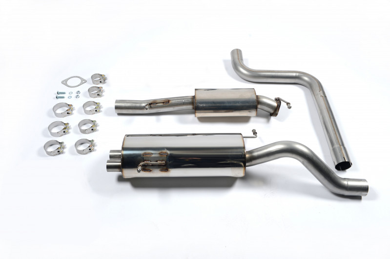 Vyroben z kvalitní nerezové oceli. Obsahuje díl bez rezonátoru (hlasitější verze), nebo variantu s rezonátorem (tišší varianta), vedení kolem zadní nápravy a tlumič výfuku za zadní nápravou. Zakončuje ho několik variant koncovek výfuku. Díky zvětšenému průměru vedení a zlepšení průtoku spalin skrz vedení, zlepšuje jak výkon, tak hlavně i zvukový projev. Výfuk je až o 35% lehčí než originální, vyrobený z těžké oceli. Největší nárust výkonu a úbytek hmotnosti lze čekat ve spojení s prvním dílem výfuku Milltek Sport.