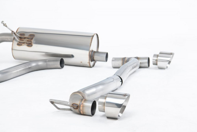 Vyroben z kvalitní nerezové oceli. Obsahuje díl bez rezonátoru (hlasitější verze), nebo variantu s rezonátorem (tišší varianta), vedení kolem zadní nápravy a tlumič výfuku za zadní nápravou. Zakončuje ho několik variant koncovek výfuku. Díky zvětšenému průměru vedení a zlepšení průtoku spalin skrz vedení, zlepšuje jak výkon, tak hlavně i zvukový projev. Výfuk je až o 35% lehčí než originální, vyrobený z těžké oceli. Největší nárust výkonu a úbytek hmotnosti lze čekat ve spojení s prvním dílem výfuku Milltek Sport.