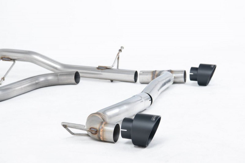 Vyroben z kvalitní nerezové oceli. Obsahuje díl bez rezonátoru (hlasitější verze), nebo variantu s rezonátorem (tišší varianta), vedení kolem zadní nápravy a tlumič výfuku za zadní nápravou. Zakončuje ho několik variant koncovek výfuku. Díky zvětšenému průměru vedení a zlepšení průtoku spalin skrz vedení, zlepšuje jak výkon, tak hlavně i zvukový projev. Výfuk je až o 35% lehčí než originální, vyrobený z těžké oceli. Největší nárust výkonu a úbytek hmotnosti lze čekat ve spojení s prvním dílem výfuku Milltek Sport.