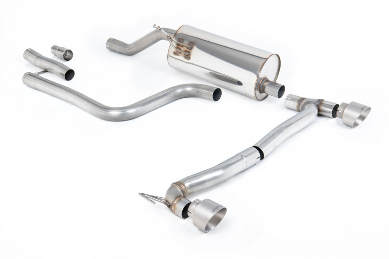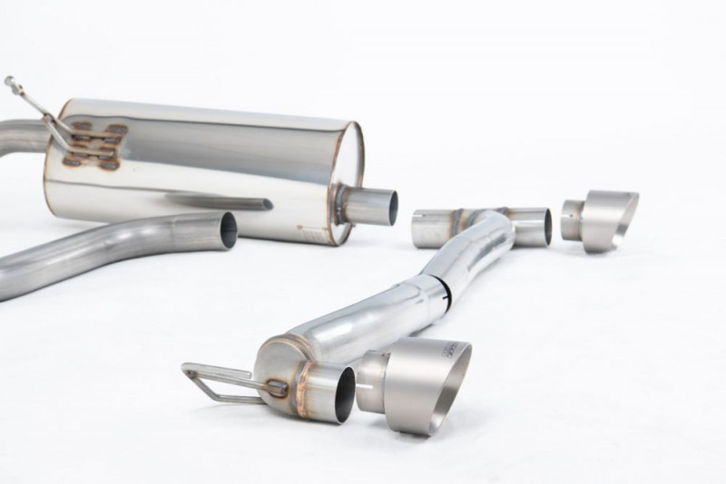 Vyroben z kvalitní nerezové oceli. Obsahuje díl bez rezonátoru (hlasitější verze), nebo variantu s rezonátorem (tišší varianta), vedení kolem zadní nápravy a tlumič výfuku za zadní nápravou. Zakončuje ho několik variant koncovek výfuku. Díky zvětšenému průměru vedení a zlepšení průtoku spalin skrz vedení, zlepšuje jak výkon, tak hlavně i zvukový projev. Výfuk je až o 35% lehčí než originální, vyrobený z těžké oceli. Největší nárust výkonu a úbytek hmotnosti lze čekat ve spojení s prvním dílem výfuku Milltek Sport.