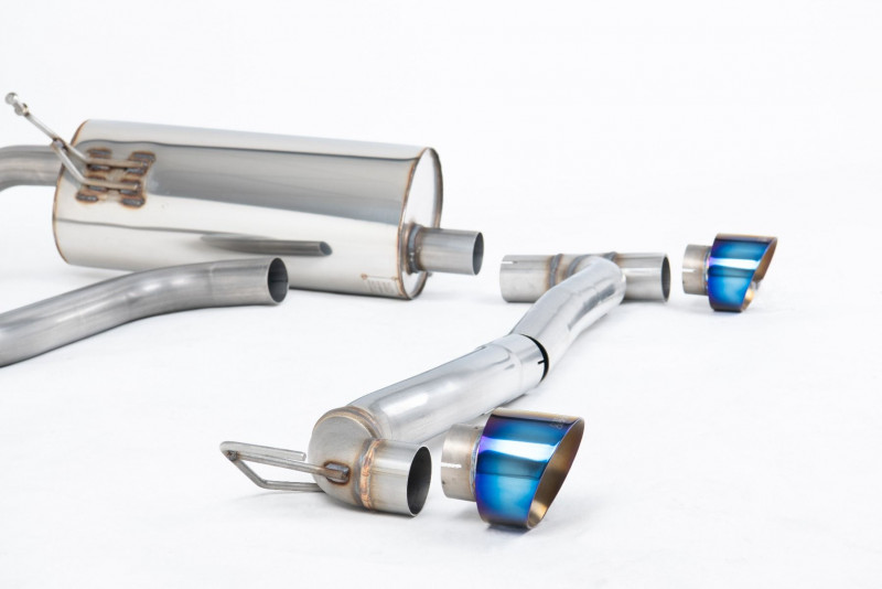 Vyroben z kvalitní nerezové oceli. Obsahuje díl bez rezonátoru (hlasitější verze), nebo variantu s rezonátorem (tišší varianta), vedení kolem zadní nápravy a tlumič výfuku za zadní nápravou. Zakončuje ho několik variant koncovek výfuku. Díky zvětšenému průměru vedení a zlepšení průtoku spalin skrz vedení, zlepšuje jak výkon, tak hlavně i zvukový projev. Výfuk je až o 35% lehčí než originální, vyrobený z těžké oceli. Největší nárust výkonu a úbytek hmotnosti lze čekat ve spojení s prvním dílem výfuku Milltek Sport.