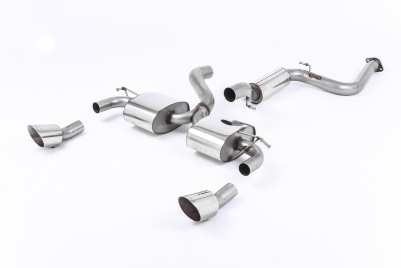 Vyroben z kvalitní nerezové oceli. Obsahuje díl bez rezonátoru (hlasitější verze), nebo variantu s rezonátorem (tišší varianta), vedení kolem zadní nápravy a tlumič výfuku za zadní nápravou. Zakončuje ho několik variant koncovek výfuku. Díky zvětšenému průměru vedení a zlepšení průtoku spalin skrz vedení, zlepšuje jak výkon, tak hlavně i zvukový projev. Výfuk je až o 35% lehčí než originální, vyrobený z těžké oceli. Největší nárust výkonu a úbytek hmotnosti lze čekat ve spojení s prvním dílem výfuku Milltek Sport.