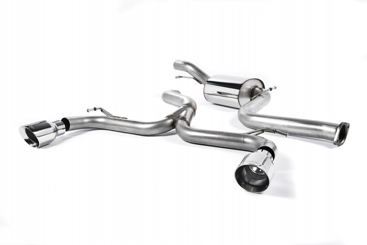 Vyroben z kvalitní nerezové oceli. Obsahuje díl bez rezonátoru (hlasitější verze), nebo variantu s rezonátorem (tišší varianta), vedení kolem zadní nápravy a tlumič výfuku za zadní nápravou. Zakončuje ho několik variant koncovek výfuku. Díky zvětšenému průměru vedení a zlepšení průtoku spalin skrz vedení, zlepšuje jak výkon, tak hlavně i zvukový projev. Výfuk je až o 35% lehčí než originální, vyrobený z těžké oceli. Největší nárust výkonu a úbytek hmotnosti lze čekat ve spojení s prvním dílem výfuku Milltek Sport.