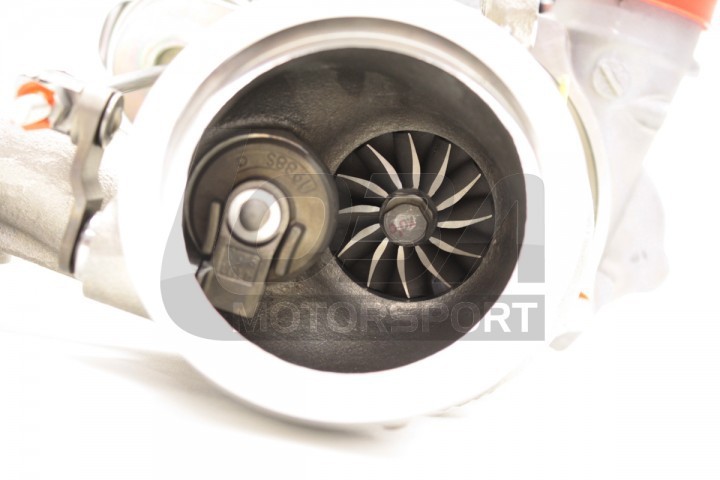 Upravené originální turbodmychadlo Borg Warner K04. Obal turbodmychadla CNC upraven, aby mohl pojmout větší kompresorové i výfukové kolo. Díky těmto úpravám, které jsou podpořeny zesílenými ložisky a těsněními, preciznímu vyvážení a vybalancování dokáže toto turbodmychadlo poskytnout vyšší výkon než seriové. Vzhledem k použitému Billet hliníkovému kompresorovému kolu, které je i při o 20% větší velikosti až o 25% lehčí než originální lité kolo, pak toto turbodmychadlo nabízí dřívější náběh a rychlejší reakce než seriové turbodmychadlo. To je ještě podpořeno větším výfukovým kolem, které má precizně optimalizované lopatky, které potlačují zpětné tlaky ve výfuku.