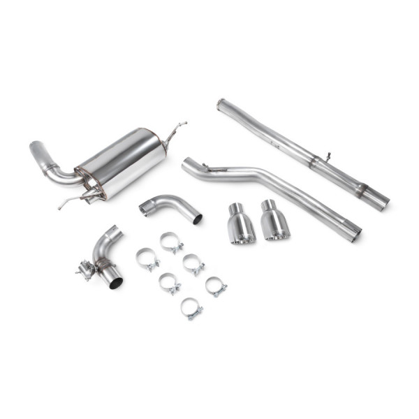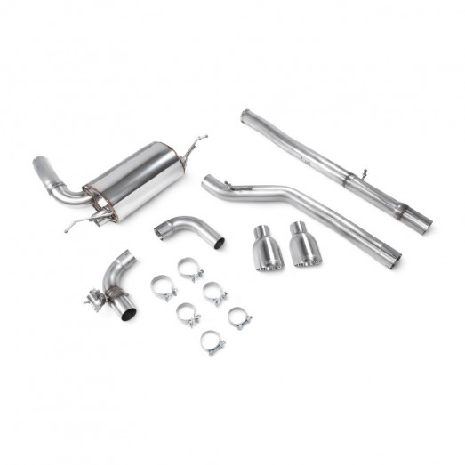 Catback výfuk Scorpion Exhaust vyrobený z nerezové oceli T304. Celý výfuk je tvořen ohýbaným vedením o průměru 76mm s průchozím absorbčním tlumičem / tlumiči (podle verze). Díky zlepšení proudění spalin a eliminaci zpětných tlaků dokáží výfuky Scorpion sprostředkovat jak maximální výkon, tak hlavně i pěkný jadrný zvuk.