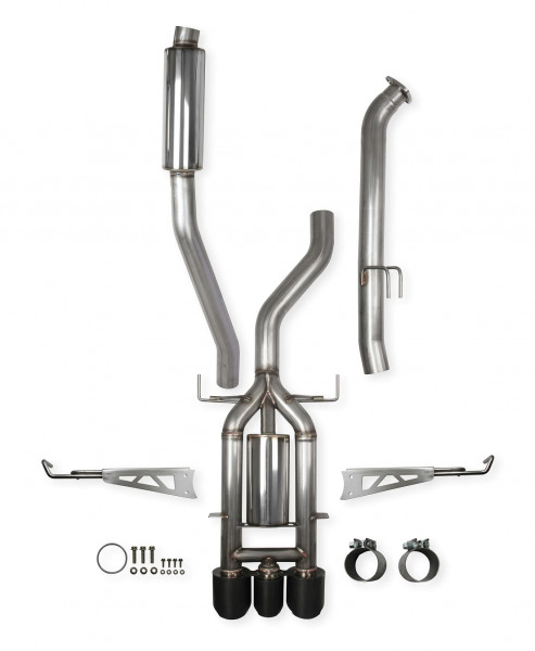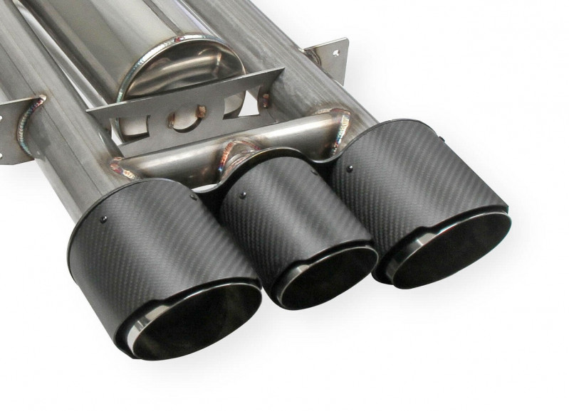 Catback výfuk pro Honda Civic TypeR FK8. Celonerezová 304 konstrukce o průměru 3" se strojově ohýbaným vedením.Obsahuje středový plně průchozí tlumič a zadní konstrukci s Hemholtz slepým rezonátorem pro potlačení nepříjemných frekvencí. Díky této unikátní konstrukci se výfuk vyznačuje řízným projevem bez nežádoucího dunění uvnitř vozu. Celý výfuk zakončují tři mohutné koncovky s 4,5" karbonovým pláštěm.