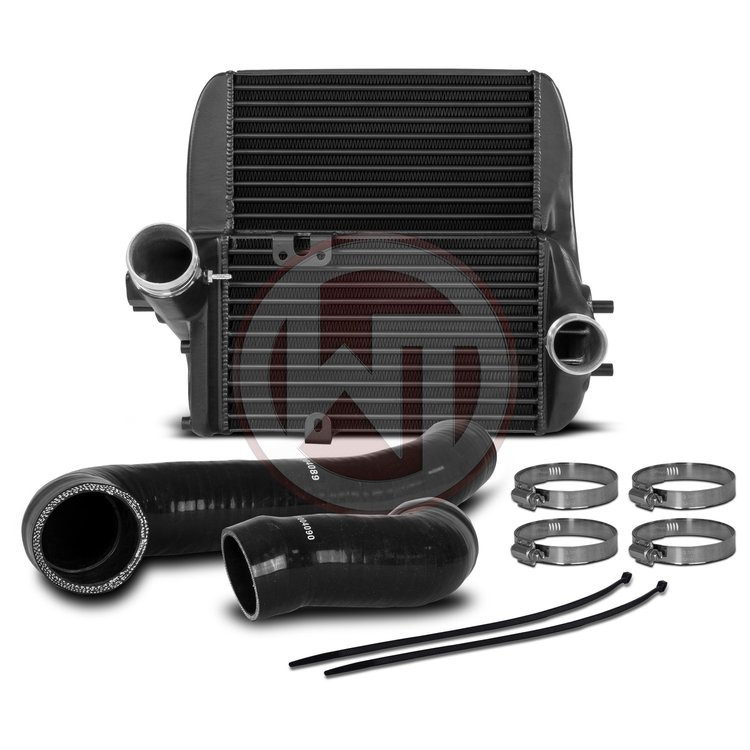 Vysoce výkonný intercooler od Wagner Tuning s rozměry (300x350x125mm) má v porovnání se seriovým chladičem o 100% větší čelní plochu a o 117% vyšší propustnost vzduchu. Inženýři u Wagner Tuning zvětšili rozměry, zvýšili efektivitu chladiče a vylepšili i bočnice s lepším usměrněním proudění vzduchu k chladiči. Došlo tak k odstranění všech seriových restrikcí a slabých míst, razantně se zlepšilo chlazení a snížily se tlakové ztráty. Tento Competition Intercooler využívá úspěchy ověnčené závodní jádro chladiče, které bylo primárně vyvinuto pro tyto aplikace. To je sestrojeno z nejkvalitnějšího chladiče druhu tube and fin (šachta s chladícími žebry) s odlitými hliníkovými bočnicemi, které obsahují usměrňovače vzduchu pro rovnoměrný přísun vzduchu k chladiči. Výsledkem je vysoká efektivita a nízké tlakové ztráty. Chladič je pevně spojený s originální výztuhou a váží pouhých 7,2kg. Tento kit se montuje na místo originálního chladiče.
