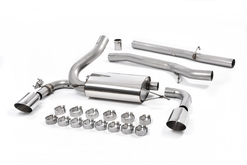 Vyroben z kvalitní nerezové oceli. Obsahuje díl bez rezonátoru (hlasitější verze), nebo variantu s rezonátorem (tišší varianta), vedení kolem zadní nápravy a tlumič výfuku za zadní s ventilem pro ovládání hlasitosti výfuku Zakončuje ho několik variant koncovek výfuku. Díky zvětšenému průměru vedení a zlepšení průtoku spalin skrz vedení, zlepšuje jak výkon, tak hlavně i zvukový projev. Výfuk je až o 35% lehčí než originální, vyrobený z těžké oceli. Největší nárust výkonu a úbytek hmotnosti lze čekat ve spojení s prvním dílem výfuku Milltek Sport.