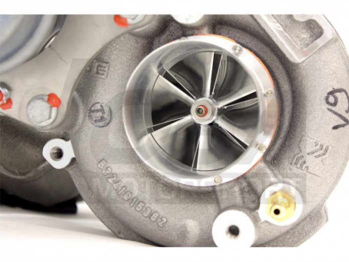 Vysoce úpravená dvě Borg Warner turbodmychadla, která jsou defakto složená do jednoho. Obal turbodmychadla CNC upraven, aby mohl pojmout větší kompresorové i výfukové kolo. Zvětšeny a vyleštěny výfukové kanálky ve svodech. Billet odlehčené kompresorové kolo nejnovější generace od LOBA Motorsport s unikátní geometrií a velikostí lopatek. Díky těmto úpravám, které jsou podpořeny zesílenými ložisky a těsněními, preciznímu vyvážení a vybalancování dokáže toto turbodmychadlo poskytnout podstatně vyšší výkon při zachování podobných charakteristik průběhu výkonu, minimálního lagu a životnosti jako u originálního turbodmychadla.