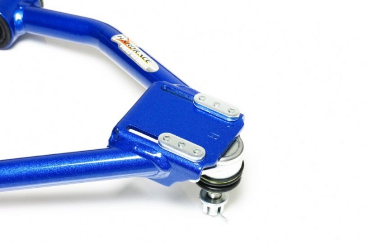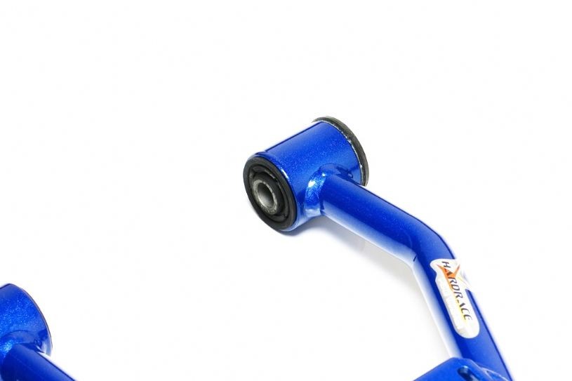 Nastavitelná ramena Hardrace disponují perfektně zpracovanou konstrukcí a přesnými rozměry pro jednoduchou plug´n´play výměnu za originální ramena. Na straně šasi jsou osazena kvalitními silenbloky z tvrzené gumy, na straně těhlice pak velmi odolným kulovým čepem s pojistnou korunkovou maticí. Ramena jsou ošetřena ED procesem a lakována do specifického modrého laku pro maximální ochranu proti opotřebení a korozi.