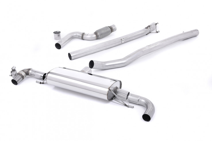Vyroben z kvalitní nerezové oceli. Obsahuje díl bez rezonátoru (hlasitější verze), nebo variantu s rezonátorem (tišší varianta), vedení kolem zadní nápravy a tlumič výfuku za zadní nápravou (ve variantě bez nebo s ventilem pro ovládání hlasitosti výfuku). Zakončen je do sériových koncovek výfuku. Díky zvětšenému průměru vedení a zlepšení průtoku spalin skrz vedení, zlepšuje jak výkon, tak hlavně i zvukový projev. Výfuk je až o 35% lehčí než originální, vyrobený z těžké oceli. Největší nárust výkonu a úbytek hmotnosti lze čekat ve spojení s prvním dílem výfuku Milltek Sport.