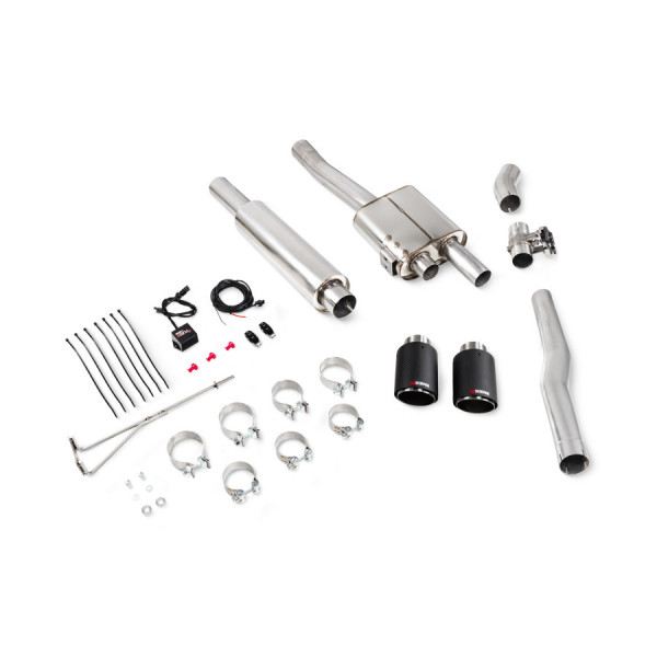 Klapkový Catback výfuk Mini Cooper S F56 vč. JCW Challenge & TunR Scorpion Exhaust - S rezonátorem / Karbonové Ascari koncovky