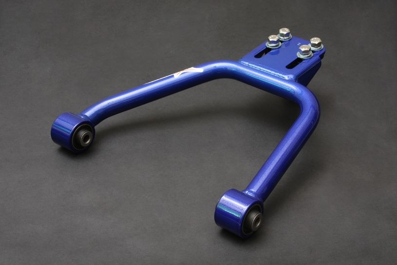 Nastavitelná ramena Hardrace disponují perfektně zpracovanou konstrukcí a přesnými rozměry pro jednoduchou plug´n´play výměnu za originální ramena. Na straně šasi jsou osazena kvalitními silentbloky z tvrzené gumy, na straně těhlice pak velmi odolným kulovým čepem s pojistnou korunkovou maticí. Ramena jsou ošetřena ED procesem a lakována do specifického modrého laku pro maximální ochranu proti opotřebení a korozi.