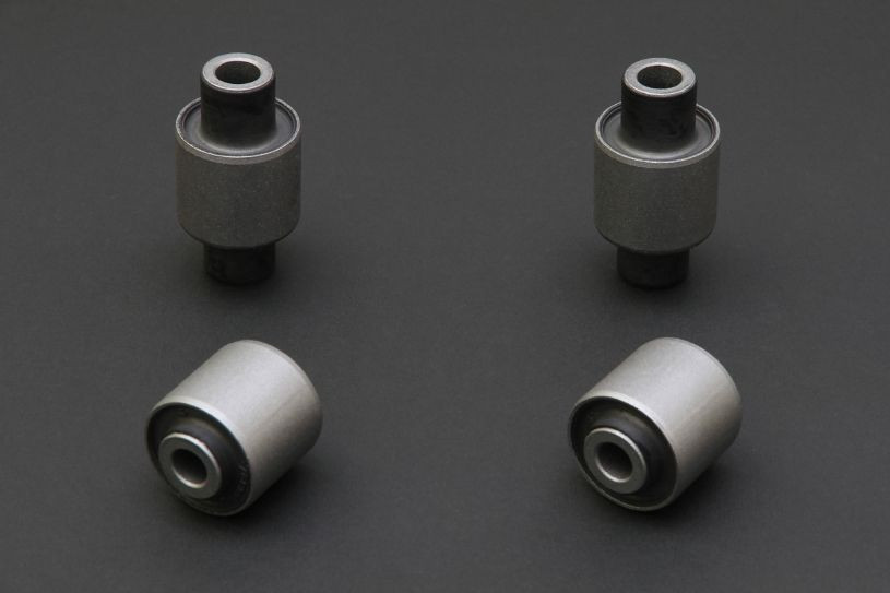 Silentbloky jsou vyrobené z kvalitní tvrzené gumy, která je ideálním kompromisem mezi měkkou gumou sériových silenbloků a tvrdými silentbloky z polyuretanu. Uložení v tvrzené gumě znatelně zpevní celý podvozek, zlepší reakci na řízení a je kompletně bezúdržbové, tudíž není potřeba občasně promazávat jako je tomu i polyuretanu. Hardrace vyvinul svojí vlastní specifikaci tvrzené gumy, která disponuje vysokou pevností a není nachylná k praskání jako běžná guma.
