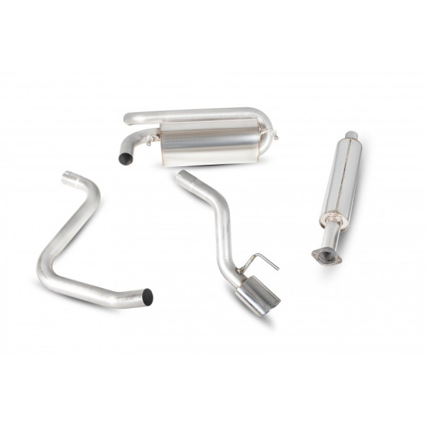 Catback výfuk Scorpion Exhaust vyrobený z nerezové oceli T304. Celý výfuk je tvořen ohýbaným vedením o průměru 63,5mm s průchozím absorbčním tlumičem / tlumiči (podle verze). Díky zlepšení proudění spalin a eliminaci zpětných tlaků dokáží výfuky Scorpion sprostředkovat jak maximální výkon, tak hlavně i pěkný jadrný zvuk.