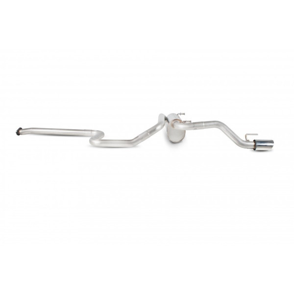 Catback výfuk Scorpion Exhaust vyrobený z nerezové oceli T304. Celý výfuk je tvořen ohýbaným vedením o průměru 63,5mm s průchozím absorbčním tlumičem / tlumiči (podle verze). Díky zlepšení proudění spalin a eliminaci zpětných tlaků dokáží výfuky Scorpion sprostředkovat jak maximální výkon, tak hlavně i pěkný jadrný zvuk.