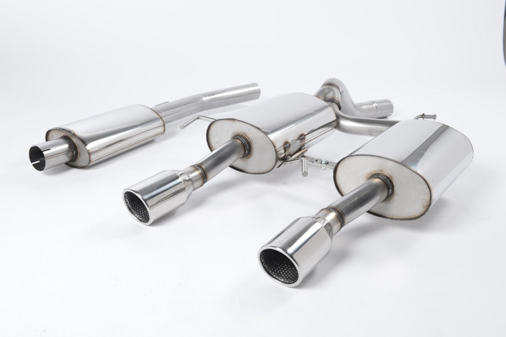 Vyroben z kvalitní nerezové oceli. Obsahuje díl bez rezonátoru (hlasitější verze), nebo variantu s rezonátorem (tišší varianta), vedení kolem zadní nápravy a tlumiče výfuku za zadní nápravou. Zakončují ho leštěné koncovky výfuku. Díky zvětšenému průměru vedení a zlepšení průtoku spalin skrz vedení, zlepšuje jak výkon, tak hlavně i zvukový projev. Výfuk je až o 35% lehčí než originální, vyrobený z těžké oceli.