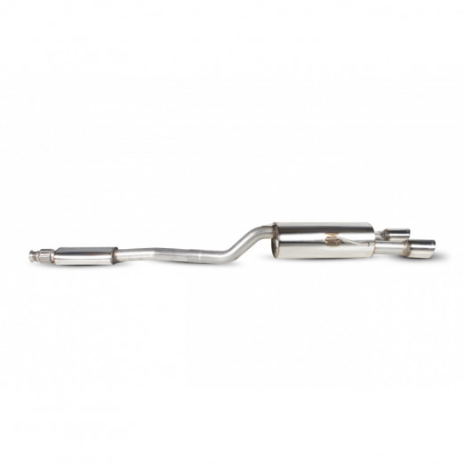 Catback výfuk Scorpion Exhaust vyrobený z nerezové oceli T304. Celý výfuk je tvořen ohýbaným vedením o průměru 63,5mm s průchozím absorbčním tlumičem / tlumiči (podle verze). Díky zlepšení proudění spalin a eliminaci zpětných tlaků dokáží výfuky Scorpion sprostředkovat jak maximální výkon, tak hlavně i pěkný jadrný zvuk.