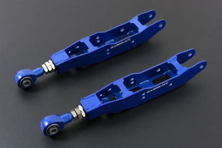Nastavitelná ramena Hardrace disponují perfektně zpracovanou konstrukcí z lehké vysokopevnostní oceli a přesnými rozměry pro jednoduchou plug´n´play výměnu za originální ramena. Jsou osazena kvalitními silentbloky z tvrzené gumy, ošetřena ED procesem a lakována do specifického modrého laku pro maximální ochranu proti opotřebení a korozi.