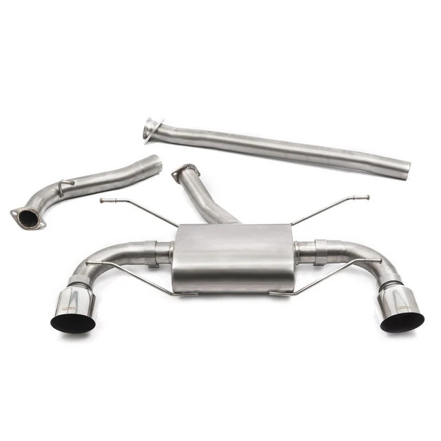 Catback výfuk Cobra Sport vyrobený z nerezové oceli T304. Celý výfuk je tvořen ohýbaným vedením o průměru 63,5 mm s průchozím absorpčním tlumičem. Díky zlepšení proudění spalin a eliminaci zpětných tlaků dokáží výfuky Cobra Sport zprostředkovat jak maximální výkon, tak hlavně i pěkný jadrný zvuk.
